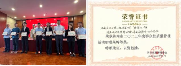 濟(jì)南質(zhì)量管理協(xié)會(huì)發(fā)布《關(guān)于公布濟(jì)南市 2023 年度群眾性質(zhì)量管理活動(dòng)優(yōu)秀成果、質(zhì)量信得過(guò)班組的通知》。金曰公司“路安”QC小組的成果“提高城市高架橋防撞墻面層維修一次合格率”榮評(píng)“濟(jì)南市2023年度群眾性質(zhì)量管理活動(dòng)QC成果特等獎(jiǎng)”。