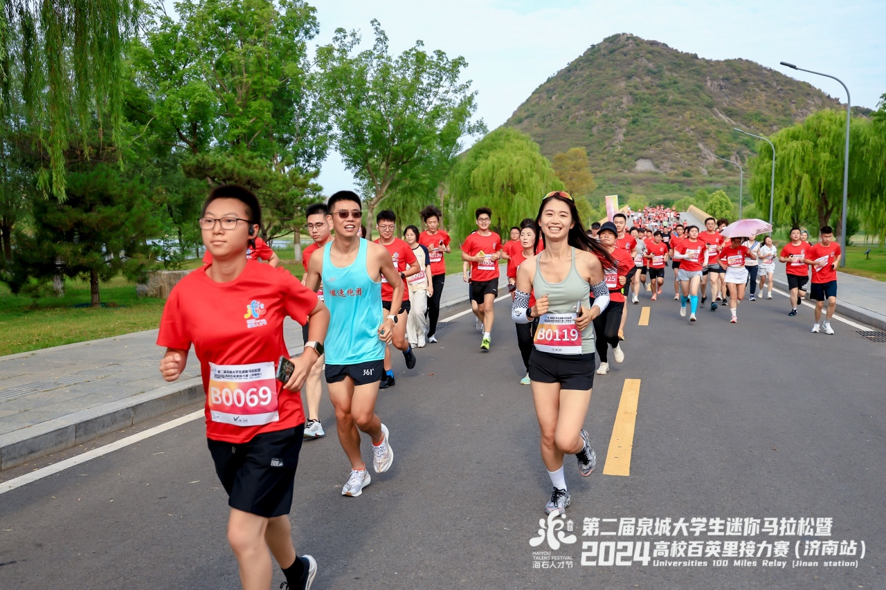 “泉”在濟(jì)南,逐夢奔跑。6月16日,第二屆泉城大學(xué)生迷你馬拉松暨2024高校百英里接力賽(濟(jì)南站)在濟(jì)南華山湖景區(qū)成功舉行,來自全國的43支高校隊(duì)伍、86組運(yùn)動(dòng)員參賽,5000余名大學(xué)生及校友會(huì)成員參加了迷你馬拉松。