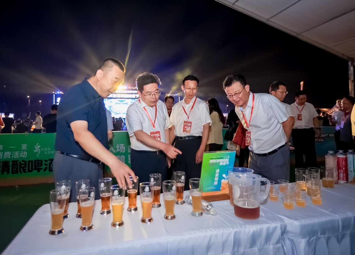 開幕式上,濟(jì)南市委宣傳部分管日常工作副部長、市文明辦主任孫世會和槐蔭區(qū)委書記孫常建開啟第一桶酒,并與濟(jì)南市人民政府辦公廳副主任譚征,濟(jì)南廣播電視臺黨委書記、臺長丁曉紅,濟(jì)南市商務(wù)局黨組副書記、副局長王志剛,濟(jì)南城市建設(shè)集團(tuán)副總經(jīng)理?xiàng)顣詵|,山東國際會展集團(tuán)負(fù)責(zé)同志,山東喜啤士精釀品牌運(yùn)營管理有限公司負(fù)責(zé)同志共同舉杯發(fā)出誠摯邀請,歡迎四海賓朋“泉”在濟(jì)南過暑假,為期一個月的“泉城購”夏日主題促消費(fèi)活動暨2024濟(jì)南精釀啤酒節(jié)正式啟幕。