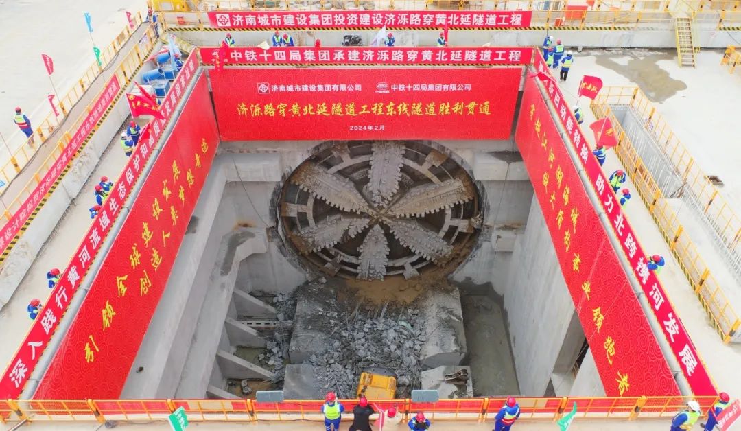 2月29日,隨著“泰山號”盾構機刀盤破洞而出,順利抵達接收工作井,由濟南城市建設集團投資建設,中鐵十四局施工的濟南黃河濟濼路北延工程東線隧道順利貫通,這是繼西線隧道1月6日貫通后取得的又一重要進展,標志著國內(nèi)最大直徑公軌合建盾構隧道安全順利穿越大型城市水庫,為全線建成通車奠定了堅實基礎。