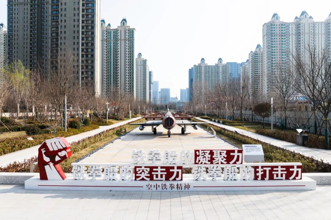 在公園南地塊紀(jì)念廣場,通過展示張莊機場原駐扎部隊6位空軍戰(zhàn)斗英雄的雕像和英雄事跡,以及“空中鐵拳精神”展示,傳承紅色基因。