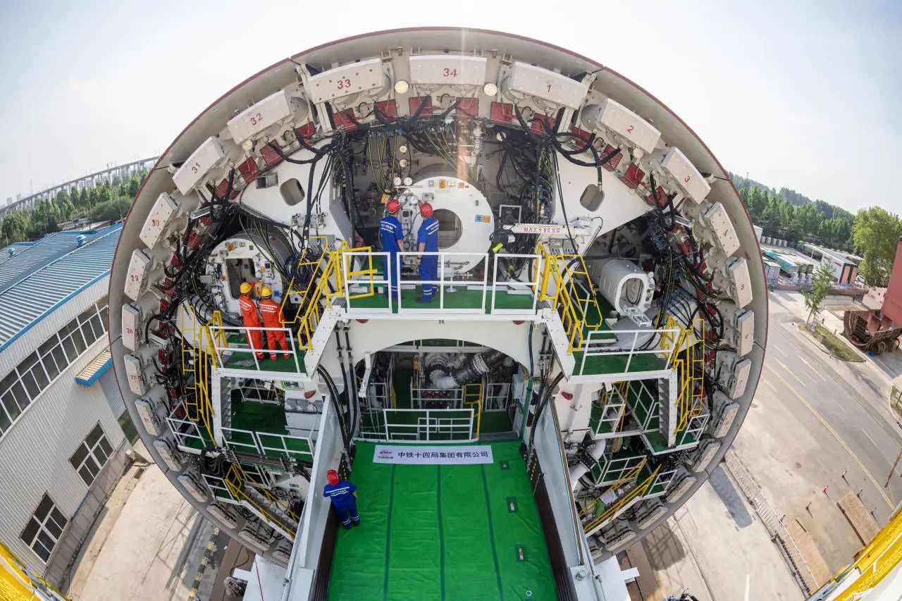 “山河號”泥水平衡盾構(gòu)機由濟南重工集團、海瑞克集團聯(lián)合濟南城市建設(shè)集團、中鐵十四局集團研發(fā)制造,最大開挖直徑17.5米,盾構(gòu)機總長163米、重約5200噸、裝機總功率12580千瓦;配備各類型開挖刀具共計306把,其中57把具備滾齒互換功能,以優(yōu)化其在多變地層中的作業(yè)性能;裝配帶壓復合型刀盤、伸縮式主驅(qū)動、泥水倉伸縮攝像頭;搭載刀盤磨損自動監(jiān)測、設(shè)備狀態(tài)在線監(jiān)測和“五官一腦”智能化裝備系統(tǒng),并通過大盾構(gòu)云智慧平臺實現(xiàn)遠程操控,以保證掘進安全和效率。