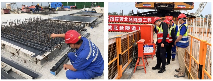 濟濼路穿黃北延隧道工程起自黃河隧道敞開段,通過兩臺4000噸重、直徑為15.76米的盾構機以隧道方式下穿邯濟鐵路、鵲山水庫后,以明挖暗埋方式下穿石濟客專及邯膠聯(lián)絡線,過科學城南邊界路后出地面,繼續(xù)向北直至國道G308(北延工程終點)。采用雙管雙層隧道,雙向六車道公鐵合建方案,管片外徑15.2米,項目全長4.38公里,其中隧道總長度3.23公里(含盾構段2.05公里)。上層道路采用城市主干路標準,雙向六車道,設計速度60公里/小時。下層軌道交通采用市域鐵路標準,設計速度100公里/小時。