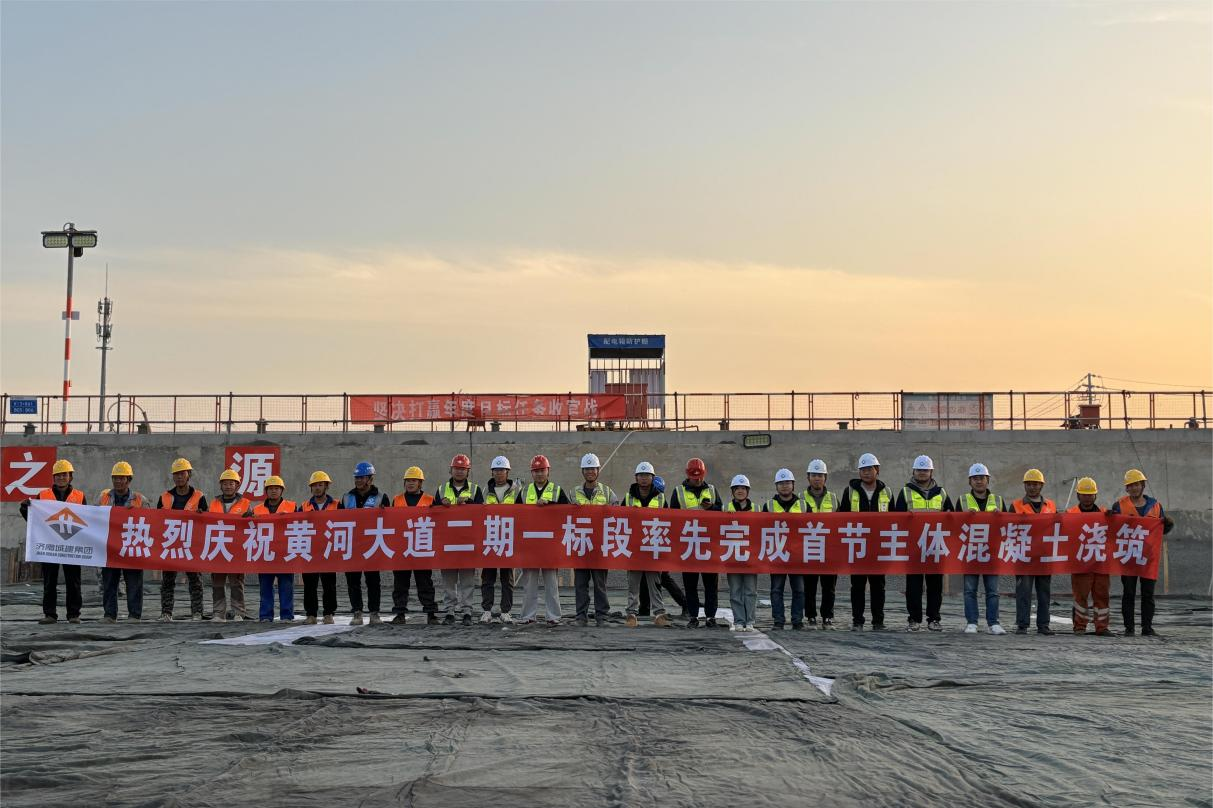 濟(jì)南黃河大道二期工程施工一標(biāo)段率先完成首節(jié)主體混凝土澆筑。黃河大道二期工程首節(jié)主體長35米,寬30.3米,高9.2米,由底板、側(cè)墻、頂板三部分組成,所用材料主要為C40補(bǔ)償收縮混凝土,抗?jié)B等級P10。為了保障主體混凝土澆筑質(zhì)量與進(jìn)度,項(xiàng)目部周密策劃組織施工,積極落實(shí)澆筑技術(shù)質(zhì)量安全交底,統(tǒng)籌調(diào)配人材機(jī)配置與進(jìn)場,鉚足干勁、團(tuán)結(jié)協(xié)作,順利完成首節(jié)主體混凝土澆筑。作為濟(jì)南新舊動(dòng)能轉(zhuǎn)換起步區(qū)的重點(diǎn)項(xiàng)目,首節(jié)主體澆筑是黃河大道二期工程建設(shè)的又一重要工程節(jié)點(diǎn)。