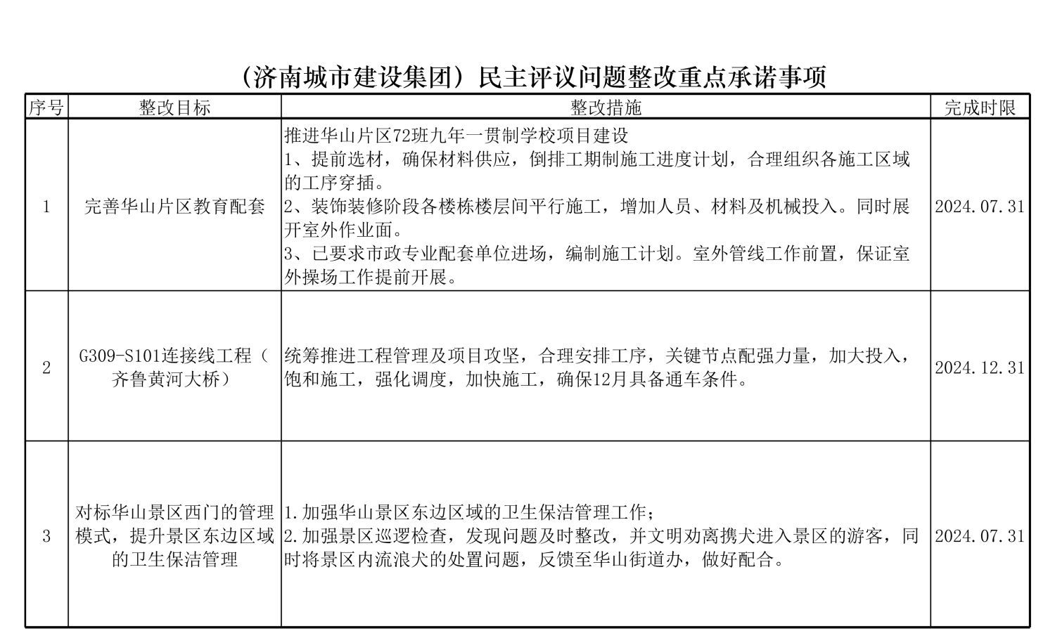 (濟(jì)南城市建設(shè)集團(tuán))民主評(píng)議問題整改重點(diǎn)承諾事項(xiàng)
