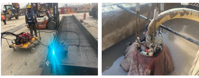 航天大道穿黃隧道工程(I期)包括隧道東岸始發(fā)井及明挖段圍護結(jié)構(gòu)采用地連墻+內(nèi)支撐形式,共計地連墻87幅,使用工字鋼3578米。項目部精心策劃,通過方案比選,確定使用焊接機器人進行施工,較傳統(tǒng)人工焊接工效提升3倍,費用降低93%。