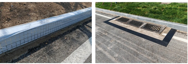在鵲華西路瀝青攤鋪過程中,應(yīng)用“瀝青防裂貼”,在瀝青施工縫處采用與設(shè)計同厚度的木條模板,保證面層厚度、壓實度,省去切縫工序,保證瀝青搭接平順;在路緣石施工中使用“路緣石防油貼”減少瀝青污染,保持道路整體的美觀和使用壽命,減少維修成本。