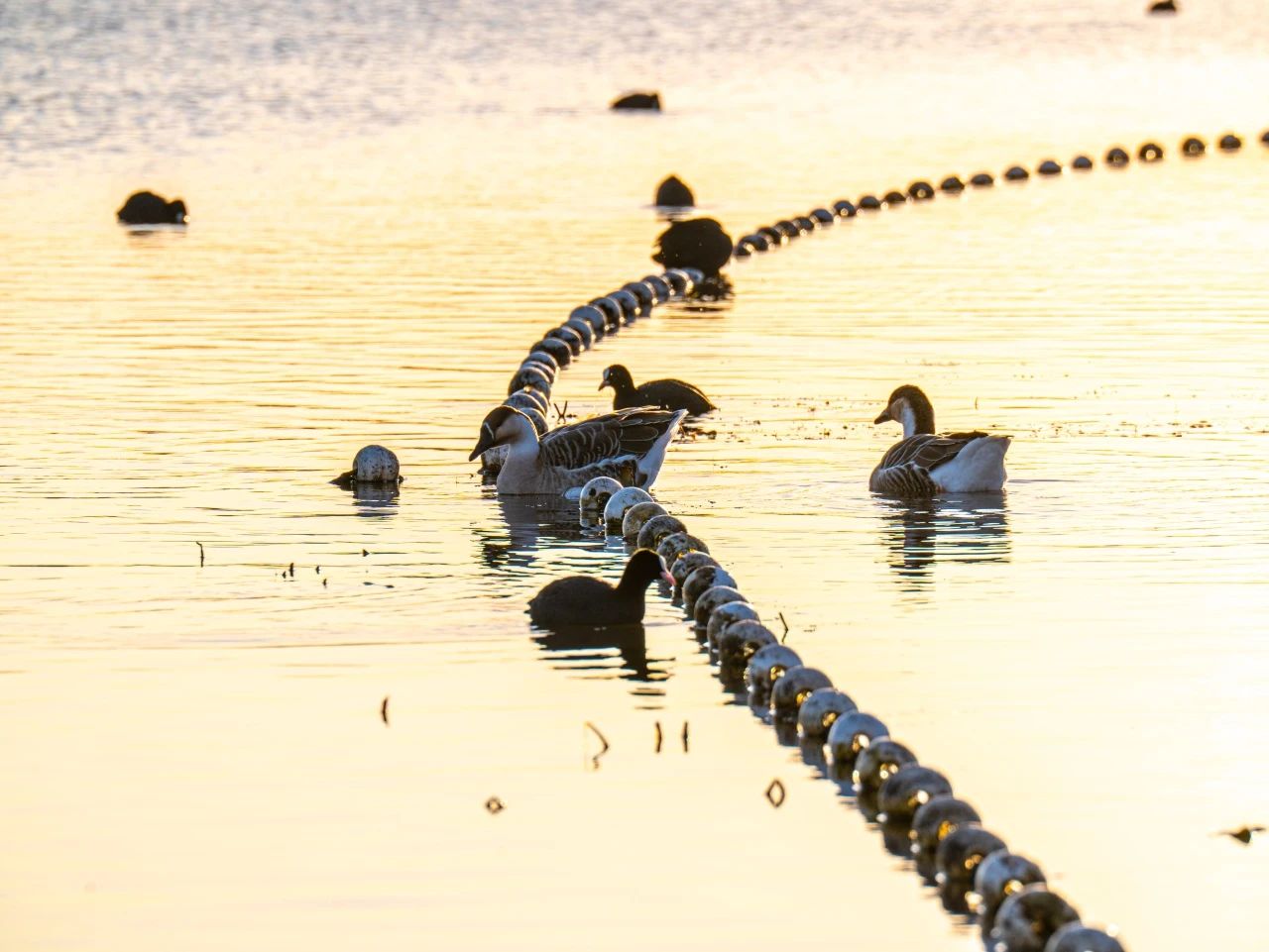 羽翼輕展映寒暉,群鳥嬉戲逐水歸。秋末冬初,上百只國家二級保護(hù)動物白骨頂雞如約來到濟(jì)南華山景區(qū)棲息,赴冬日的約定。