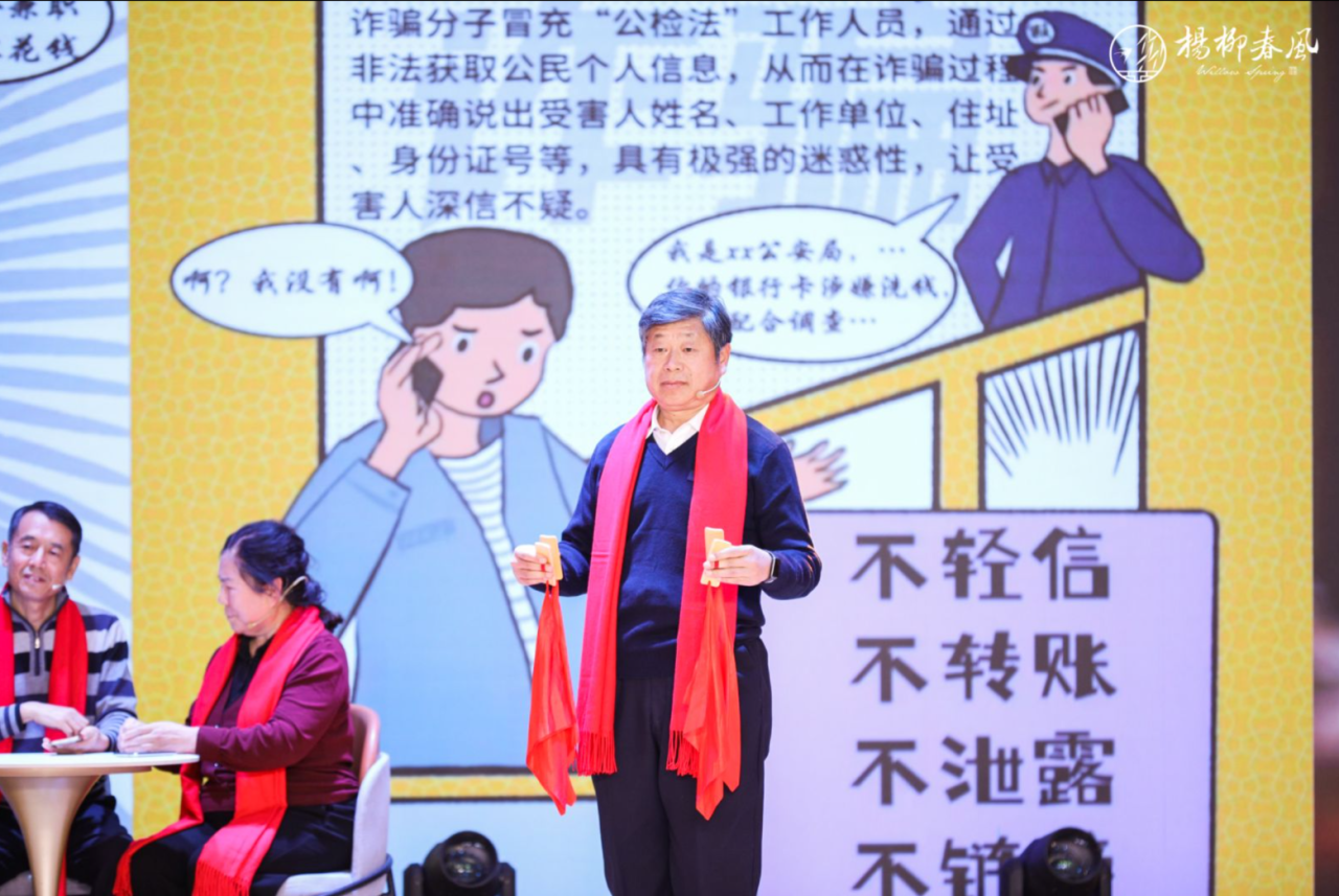 頤樂學(xué)院的老師和學(xué)員們帶來了《梁?!泛汀陡桧炞鎳罚貌煌臉菲餮葑喑鰰r代的聲音?;笔a區(qū)派出所的離退休老干部將反詐知識融入快板,節(jié)目既幽默有趣又具有警示意義,讓觀眾坐得住、聽得進(jìn)、記得牢。