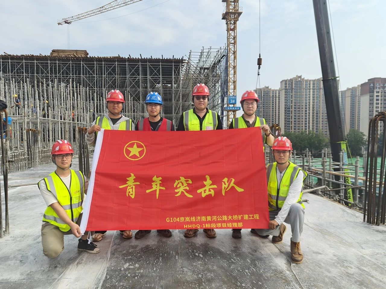 金曰公司Kingyue縱橫幫青年突擊隊成立于2021年9月,由21名青年骨干組成,其中黨員3名、團員18名。他們以“使命必達、攻堅克難”為信條,在濟南黃河大橋擴建工程等重大項目中,用行動詮釋新時代青年的責(zé)任與擔(dān)當(dāng)。